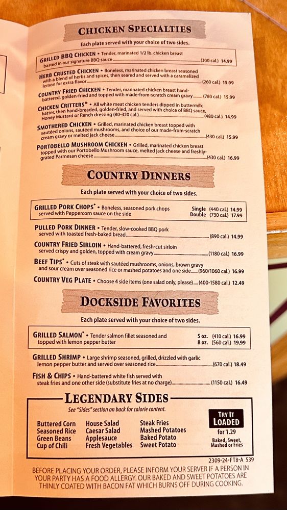 All meals come with an order of Fresh-Baked Bread. Click here to order an additional Dozen or Half-Dozen. Each order comes with a portion of Honey Cinnamon butter.